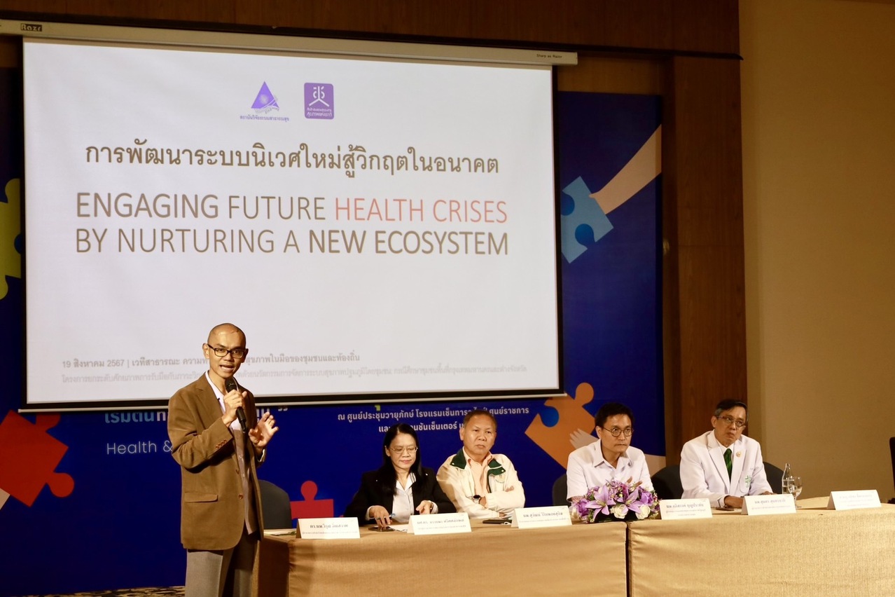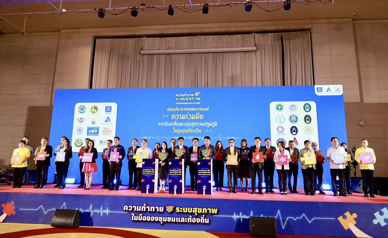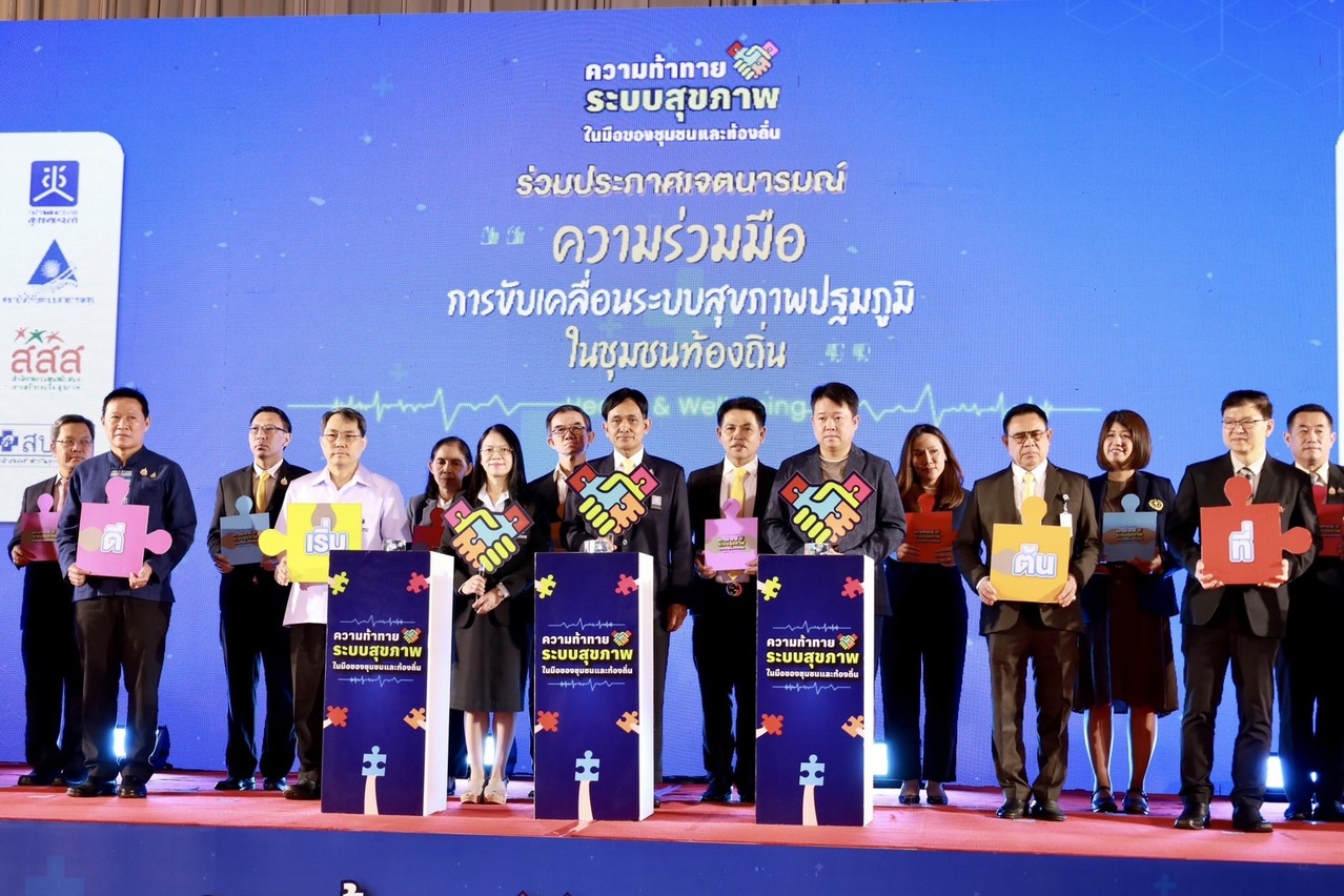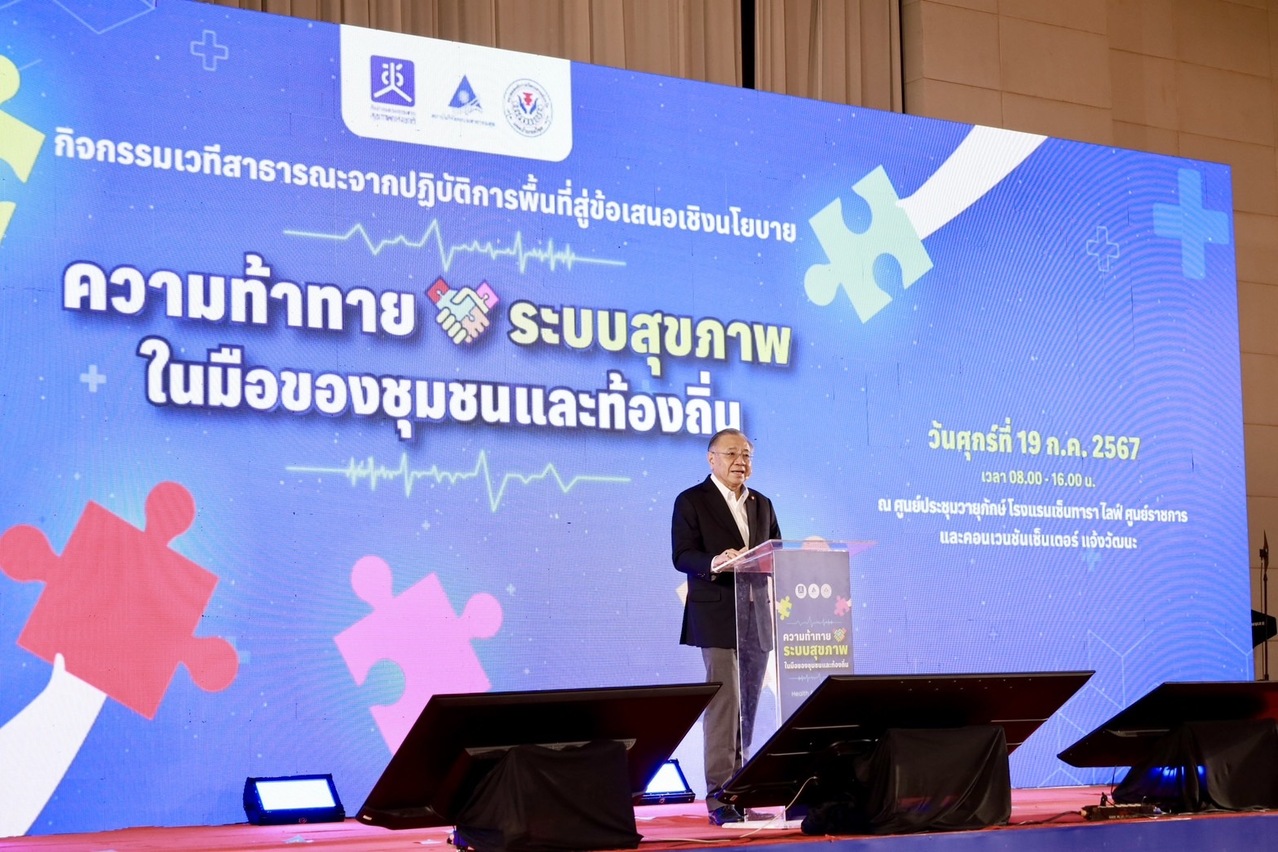 สถาบันวิจัยระบบสาธารณสุข (สวรส.) จึงได้สนับสนุนทุนวิจัยให้สำนักงานคณะกรรมการสุขภาพแห่งชาติ (สช.) เป็นแกนหลักในการศึกษาวิจัย 2 โครงการ ได้แก่ 1) โครงการศึกษาและพัฒนากลไกความร่วมมือระหว่างองค์กรปกครองส่วนท้องถิ่น เพื่ออภิบาลระบบสุขภาพท้องถิ่น ภายใต้บริบทการถ่ายโอน รพ.สต. ให้แก่ อบจ. และ 2) โครงการยกระดับศักยภาพการรับมือกับภาวะวิกฤตด้านสุขภาพด้วยนวัตกรรมการจัดการระบบสุขภาพปฐมภูมิโดยชุมชน: กรณีศึกษาชุมชนพื้นที่กรุงเทพมหานครและต่างจังหวัด พร้อมร่วมกันจัดเวทีสาธารณะกับสมาคมองค์การบริหารส่วนจังหวัดแห่งประเทศไทย ในหัวข้อ “จากปฏิบัติการพื้นที่สู่ข้อเสนอเชิงนโยบาย: ความท้าทายระบบสุขภาพในมือของชุมชนและท้องถิ่น” เมื่อวันที่ 19 ก.ค. 2567 เพื่อเปิดเวทีและพื้นที่ในการนำเสนอนวัตกรรมและผลการศึกษาวิจัยที่เกี่ยวข้องกับระบบสุขภาพปฐมภูมิ และระดมความคิดเห็นเพื่อขับเคลื่อนข้อเสนอเชิงนโยบาย รวมถึงมีการประกาศเจตนารมณ์ความร่วมมือในการพัฒนาและขับเคลื่อนระบบสุขภาพท้องถิ่น โดยมีผู้เข้าร่วมการประชุมในรูปแบบ onsite และ online กว่า 1,500 คน จากหน่วยงานภาคีเครือข่าย อาทิ สมาคมองค์การบริหารส่วนจังหวัดแห่งประเทศไทย กระทรวงมหาดไทย กระทรวงสาธารณสุข กรมส่งเสริมการปกครองท้องถิ่น คณะกรรมการสุขภาพแห่งชาติ สถาบันวิจัยระบบสาธารณสุข สำนักงานหลักประกันสุขภาพแห่งชาติ สถาบันรับรองคุณภาพสถานพยาบาล (องค์การมหาชน) สถาบันการแพทย์ฉุกเฉินแห่งชาติ สำนักงานกองทุนสนับสนุนการสร้างเสริมสุขภาพ สมาคมสันนิบาตเทศบาลแห่งประเทศไทย สมาคมเทศบาลนครและเมือง (ส.ท.น.ม.) หน่วยบริหารและจัดการทุนด้านการพัฒนาระดับพื้นที่สมาคมองค์การบริหารส่วนตำบลแห่งประเทศไทย สถาบันพัฒนาองค์กรชุมชน (องค์การมหาชน) สำนักงานคณะกรรมการการกระจายอำนาจให้แก่องค์กรปกครองส่วนท้องถิ่น กรุงเทพมหานคร อบจ.เชียงใหม่ อบจ.สงขลา อบจ.ลำปาง อบจ.นครราชสีมา อบจ.ขอนแก่น และ อบจ.ภูเก็ต ฯลฯ
