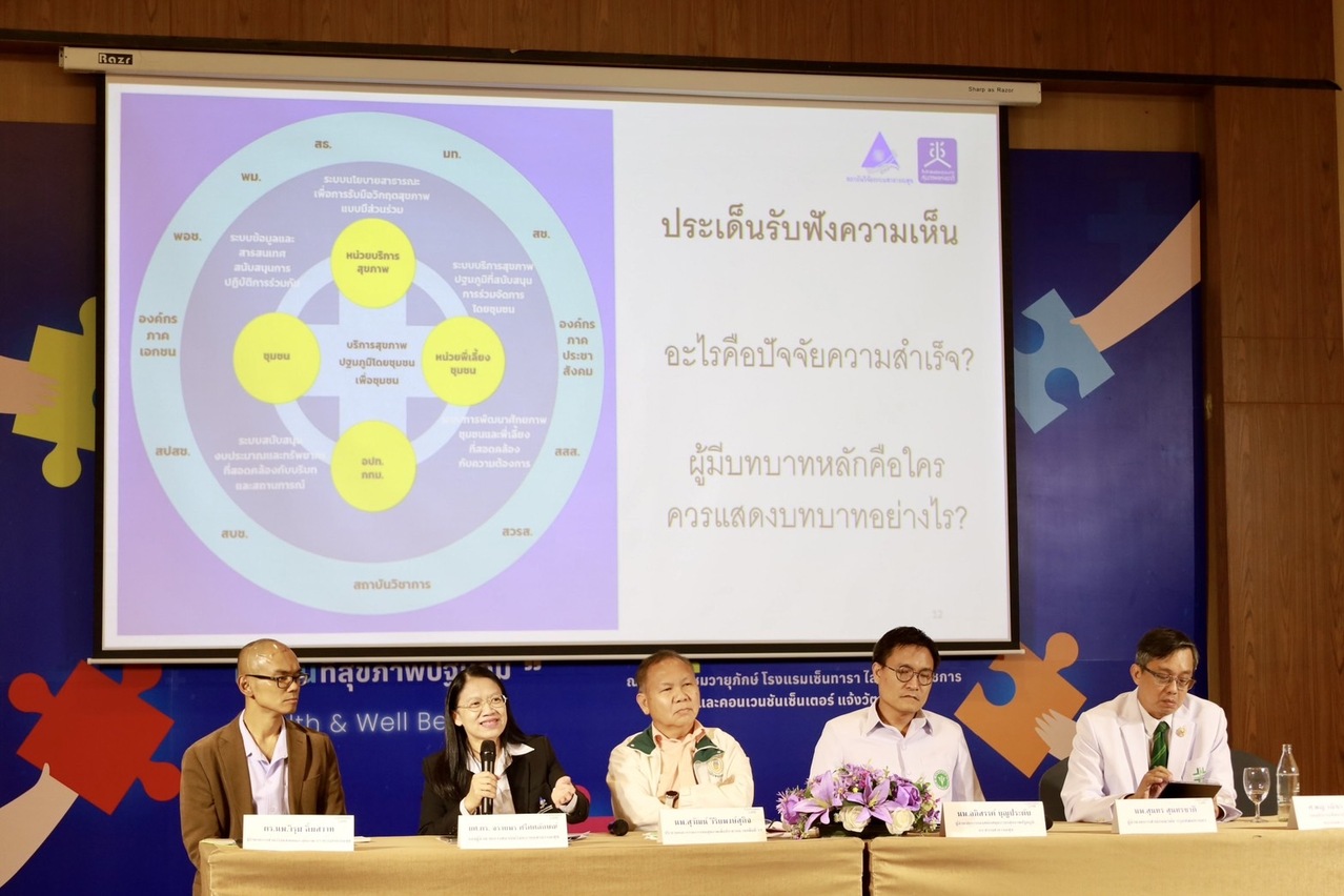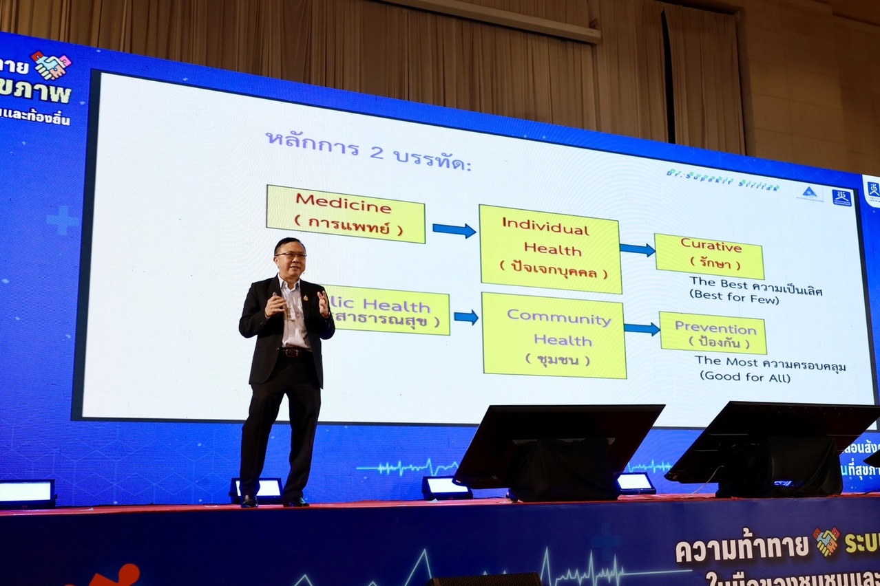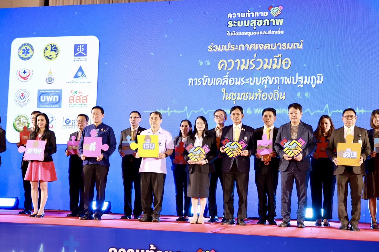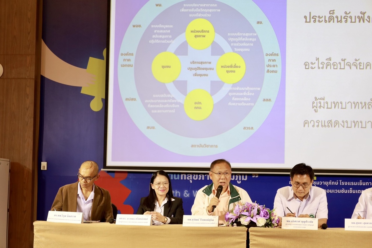 สถาบันวิจัยระบบสาธารณสุข (สวรส.) จึงได้สนับสนุนทุนวิจัยให้สำนักงานคณะกรรมการสุขภาพแห่งชาติ (สช.) เป็นแกนหลักในการศึกษาวิจัย 2 โครงการ ได้แก่ 1) โครงการศึกษาและพัฒนากลไกความร่วมมือระหว่างองค์กรปกครองส่วนท้องถิ่น เพื่ออภิบาลระบบสุขภาพท้องถิ่น ภายใต้บริบทการถ่ายโอน รพ.สต. ให้แก่ อบจ. และ 2) โครงการยกระดับศักยภาพการรับมือกับภาวะวิกฤตด้านสุขภาพด้วยนวัตกรรมการจัดการระบบสุขภาพปฐมภูมิโดยชุมชน: กรณีศึกษาชุมชนพื้นที่กรุงเทพมหานครและต่างจังหวัด พร้อมร่วมกันจัดเวทีสาธารณะกับสมาคมองค์การบริหารส่วนจังหวัดแห่งประเทศไทย ในหัวข้อ “จากปฏิบัติการพื้นที่สู่ข้อเสนอเชิงนโยบาย: ความท้าทายระบบสุขภาพในมือของชุมชนและท้องถิ่น” เมื่อวันที่ 19 ก.ค. 2567 เพื่อเปิดเวทีและพื้นที่ในการนำเสนอนวัตกรรมและผลการศึกษาวิจัยที่เกี่ยวข้องกับระบบสุขภาพปฐมภูมิ และระดมความคิดเห็นเพื่อขับเคลื่อนข้อเสนอเชิงนโยบาย รวมถึงมีการประกาศเจตนารมณ์ความร่วมมือในการพัฒนาและขับเคลื่อนระบบสุขภาพท้องถิ่น โดยมีผู้เข้าร่วมการประชุมในรูปแบบ onsite และ online กว่า 1,500 คน จากหน่วยงานภาคีเครือข่าย อาทิ สมาคมองค์การบริหารส่วนจังหวัดแห่งประเทศไทย กระทรวงมหาดไทย กระทรวงสาธารณสุข กรมส่งเสริมการปกครองท้องถิ่น คณะกรรมการสุขภาพแห่งชาติ สถาบันวิจัยระบบสาธารณสุข สำนักงานหลักประกันสุขภาพแห่งชาติ สถาบันรับรองคุณภาพสถานพยาบาล (องค์การมหาชน) สถาบันการแพทย์ฉุกเฉินแห่งชาติ สำนักงานกองทุนสนับสนุนการสร้างเสริมสุขภาพ สมาคมสันนิบาตเทศบาลแห่งประเทศไทย สมาคมเทศบาลนครและเมือง (ส.ท.น.ม.) หน่วยบริหารและจัดการทุนด้านการพัฒนาระดับพื้นที่สมาคมองค์การบริหารส่วนตำบลแห่งประเทศไทย สถาบันพัฒนาองค์กรชุมชน (องค์การมหาชน) สำนักงานคณะกรรมการการกระจายอำนาจให้แก่องค์กรปกครองส่วนท้องถิ่น กรุงเทพมหานคร อบจ.เชียงใหม่ อบจ.สงขลา อบจ.ลำปาง อบจ.นครราชสีมา อบจ.ขอนแก่น และ อบจ.ภูเก็ต ฯลฯ