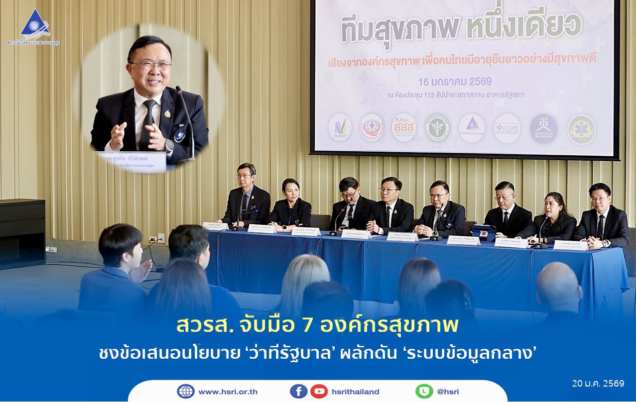 นพ.ศุภกิจ ศิริลักษณ์ ผู้อำนวยการสถาบันวิจัยระบบสาธารณสุข เป็นตัวแทนผู้บริหาร 8 องค์กรด้านสุขภาพ แถลงข้อเสนอนโยบายผ่านเวที “เสียงจากองค์กรสุขภาพ เพื่อคนไทยมีอายุยืนยาวอย่างมีสุขภาพดี” ที่จัดขึ้น ณ สัปปายะสภาสถาน อาคารรัฐสภา กรุงเทพมหานคร เมื่อวันที่ 16 ม.ค. 2569 ที่ผ่านมา โดยมีสาระสำคัญคือ 1. รัฐต้องลงทุนกับระบบข้อมูลสุขภาพที่ต้องครอบคลุมทุกภาคส่วน 2. จัดทำระบบบริการที่รองรับการดูแลผู้สูงอายุให้เจ็บป่วยช้าลง และมีระบบการดูแลระยะยาวไปจนถึงการดูแลระยะท้ายของชีวิต (Long term care and palliative care) ให้ครอบคลุมเพียงพอและรวดเร็ว 3. จำเป็นต้องทบทวนระบบการดูแลตั้งแต่พัฒนาการเด็ก สุขภาพ และสมรรถนะ เพื่อให้เด็กที่เกิดน้อย ต้องไม่ด้อยคุณภาพ 4. ระบบการเงินการคลังสุขภาพต้องทำให้เกิดความยั่งยืนผ่านการลดการจ่ายให้กับบริการที่มีคุณค่าต่ำ (Low Value Care) 5. การพัฒนาระบบสุขภาพปฐมภูมิแบบมีส่วนร่วม ซึ่งเป็นคานงัดสำคัญ เพื่อให้เกิดความเข้มแข็ง โดยให้ความสำคัญกับการลงทุนและมุ่งเน้นการส่งเสริมสุขภาพและป้องกันโรค (P&P) ให้มากขึ้น 6. ระบบบริการที่สร้างเสริมสุขภาพและป้องกันโรค ดูแลรักษา และฟื้นฟูสุขภาพ เพื่อรองรับการเจ็บป่วยของประชาชน โดยต้องคำนึงถึงระบบคุณภาพในทุกขั้นตอน ตลอดจนมีการคุ้มครองทั้งแพทย์และผู้ป่วยให้สามารถให้และรับบริการได้อย่างมีคุณภาพและปลอดภัย 7. การยกระดับบริการโดยเฉพาะการแพทย์ขั้นสูง และระบบบริการที่รองรับภัยพิบัติและภาวะฉุกเฉินอย่างทันท่วงที (Public health emergency preparedness) และครอบคลุมเพียงพอจนถึงระดับตำบล 8. ต้องมีมาตรการส่งเสริมอย่างจริงจัง และสร้างระบบนิเวศที่เอื้อต่อการดูแลสุขภาพตนเอง โดยใช้เทคโนโลยีและนวัตกรรม รวมถึงการนำแนวคิดเศรษฐศาสตร์พฤติกรรมมาปรับใช้ให้เกิดผล และ 9. ต้องให้ความสำคัญกับกระบวนการนโยบายสาธารณะอย่างมีส่วนร่วม (Participatory Public Policy Process)