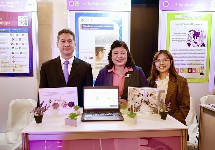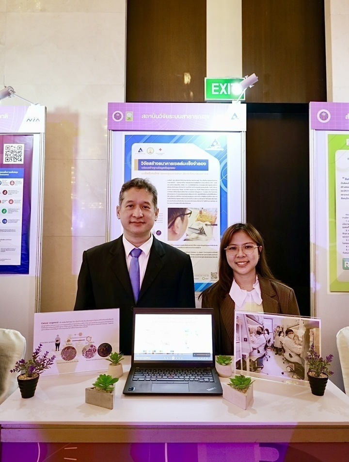ด้านสถาบันวิจัยระบบสาธารณสุข (สวรส.) หนึ่งในเครือข่าย PMU ร่วมนำผลงานวิจัยเด่น “ธนาคารออกานอยด์มะเร็งตับและท่อนํ้าดี” ฐานข้อมูลพันธุกรรมที่สามารถต่อยอดพัฒนาแนวทางการรักษาและการเลือกยาที่เหมาะสมเฉพาะราย จัดแสดงในงานแถลงข่าวการจัดงานมหกรรมงานวิจัยแห่งชาติ 2567 ภายใต้แนวคิด “สานพลังวิจัย ขับเคลื่อนเศรษฐกิจและสังคมไทยอย่างยั่งยืน" ที่จะจัดขึ้นระหว่างวันที่ 26-30 สิงหาคม 2567 ณ โรงแรมเซ็นทาราแกรนด์ และบางกอกคอนเวนชันเซ็นเตอร์ เซ็นทรัลเวิลด์ กทม.