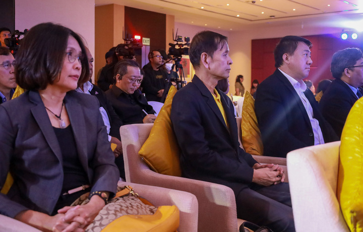 รองศาสตราจารย์ ดร.ปัทมาวดี โพชนุกูล ผู้อำนวยการสำนักงานคณะกรรมการส่งเสริมวิทยาศาสตร์ วิจัยและนวัตกรรม (สกสว.) ร่วมด้วยคุณเกรียงไกร เธียรนุกุล ประธานสภาอุตสาหกรรมแห่งประเทศไทย (ส.อ.ท.) และคุณกอบสุข เอี่ยมสุรีย์ รองประธานคณะกรรมการส่งเสริมนวัตกรรมและวิจัยหอการค้าไทย และสภาหอการค้าแห่งประเทศไทย ร่วมแถลงข่าวพร้อมทั้งร่วมถ่ายภาพกับผู้แทนหน่วยงานที่มาร่วมงานในวันนี้