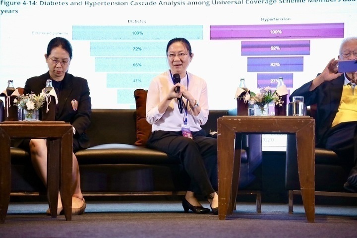 ดร.ภญ.วลัยพร พัชรนฤมล นักวิจัย สำนักงานพัฒนานโยบายสุขภาพระหว่างประเทศ (IHPP) ในฐานะทีมวิจัยโครงการ “การสร้างและจัดการองค์ความรู้สำหรับการประชุมวิชาการระดับชาติด้านหลักประกันสุขภาพถ้วนหน้า พ.ศ. 2566: สถานการณ์ ความก้าวหน้า ความท้าทายและก้าวต่อไปในอนาคตของระบบหลักประกันสุขภาพถ้วนหน้าไทย” ภายใต้การสนับสนุนของ สวรส. กล่าวถึงสถานการณ์สุขภาพของประเทศไทย โดยอ้างอิงจากเป้าประสงค์ของเป้าหมายการพัฒนาที่ยั่งยืน (SDGs) ข้อที่ 3.8 ระบุว่า ต้องบรรลุการมีหลักประกันสุขภาพถ้วนหน้า รวมถึงการป้องกันความเสี่ยงทางการเงิน ด้วยการเข้าถึงการบริการสาธารณสุขที่จำเป็นอย่างมีคุณภาพ โดยมี 2 ตัวชี้วัด ได้แก่ ตัวชี้วัดที่ 3.8.1 ความครอบคลุมของบริการด้านสุขภาพที่จำเป็น และ 3.8.2 ประชาชนต้องไม่มีภาระค่าใช้จ่ายที่สูงเกินไปในการเข้ารับบริการด้านสุขภาพ เมื่อเปรียบเทียบกับรายได้ครัวเรือน ซึ่งประเทศไทย เมื่อปี 2564 พบว่า ตัวชี้วัดที่ 3.8.1 ได้ร้อยละ 82 ขณะที่ค่าเฉลี่ยของทั่วโลกอยู่ที่ ร้อยละ 68 ส่วนตัวชี้วัดที่ 3.8.2 พบว่ามีครัวเรือนในประเทศไทยที่ล้มละลายจากการรักษาสุขภาพ เพียงร้อยละ 2.1 ของครัวเรือนทั้งหมด ซึ่งเป็นตัวเลขที่ค่อนข้างต่ำเมื่อเปรียบกับประเทศอื่นๆ เช่น ประเทศอินเดีย ประเทศบังคลาเทศ ประเทศพม่า ซึ่งตัวอย่างข้อมูลสถานการณ์หรือองค์ความรู้ในลักษณะนี้ มีความสำคัญต่อการดำเนินนโยบายและการพัฒนาระบบหลักประกันสุขภาพในอนาคต