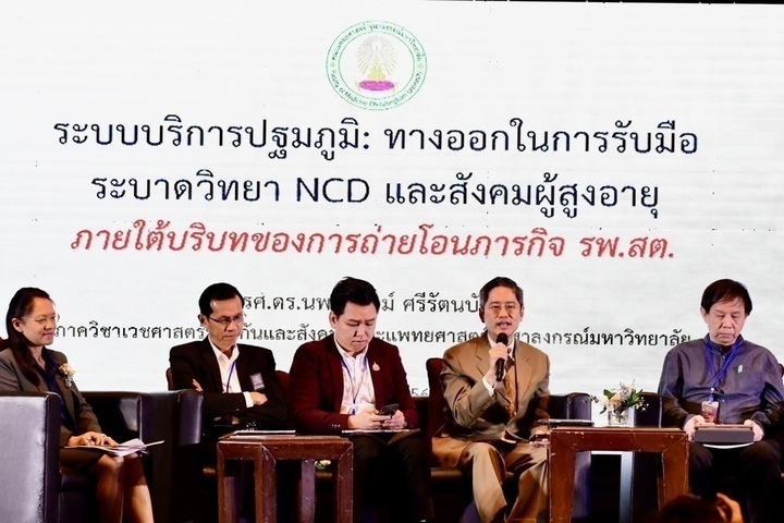 สถาบันวิจัยระบบสาธารณสุข (สวรส.) จัดเวทีเสวนาหัวข้อ “ระบบบริการปฐมภูมิ: ทางออกในการรับมือระบาดวิทยา NCD และสังคมผู้สูงอายุ” ในการประชุมวิชาการสถาบันวิจัยระบบสาธารณสุข ปี 2567 “ร่วมพลิกระบบสุขภาพไทย ด้วยงานวิจัยคุณภาพ” โดยในเวทีมีการแลกเปลี่ยนเรียนรู้และนำเสนอผลงานวิจัยระบบบริการสุขภาพปฐมภูมิ ภายใต้สถานการณ์การถ่ายโอนภารกิจโรงพยาบาลส่งเสริมสุขภาพตำบล (รพ.สต.) ให้แก่องค์การบริหารส่วนจังหวัด (อบจ.) โดยมีวิทยากรสำคัญ อาทิ รศ.ดร.นพ.จิรุตม์ ศรีรัตนบัลล์ รองคณบดีฝ่ายวางแผนและพัฒนา คณะแพทยศาสตร์ จุฬาลงกรณ์มหาวิทยาลัย, ศ.ดร.อุดม ทุมโฆสิต อาจารย์คณะรัฐประศาสนศาสตร์ สถาบันบัณฑิตพัฒนบริหารศาสตร์, นพ.อภิสรรค์ บุญประดับ ผู้อำนวยการสำนักสนับสนุนระบบสุขภาพปฐมภูมิ กระทรวงสาธารณสุข, นพ.ปรีดา แต้อารักษ์ รองเลขาธิการคณะกรรมการสุขภาพแห่งชาติ, นายสมบัติ ชูเถื่อน ผู้เชี่ยวชาญพิเศษ สมาคมองค์การบริหารส่วนจังหวัดแห่งประเทศไทย ฯลฯ