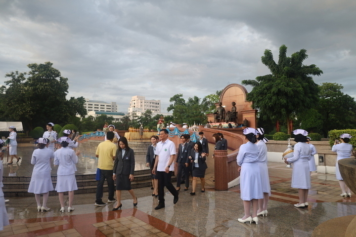 เมื่อวันที่ 21 ตุลาคม 2567 สถาบันวิจัยระบบสาธารณสุข (สวรส.) นำโดยนายแพทย์สุระ วิเศษศักดิ์ รองผู้อำนวยการสถาบันวิจัยระบบสาธารณสุข พร้อมด้วยผู้บริหารและเจ้าหน้าที่ ร่วมพิธีวางพานพุ่มถวายราชสักการะสมเด็จพระศรีนครินทรา บรมราชชนนี เนื่องในวันพยาบาลเเห่งชาติ ประจำปี 2567 ณ พระราชานุสาวรีย์สมเด็จพระมหิตลาธิเบศร อดุลยเดชวิกรม พระบรมราชชนก และสมเด็จพระศรีนครินทราบรมราชชนนี กระทรวงสาธารณสุข ทั้งนี้ในพิธีดังกล่าว นายสมศักดิ์ เทพสุทิน รัฐมนตรีว่าการกระทรวงสาธารณสุข ให้เกียรติเป็นประธาน โดยมีผู้บริหารจากหน่วยงานในสังกัดกระทรวงสาธารณสุข สภาการพยาบาล สถานบริการ/สถาบันการศึกษาพยาบาล องค์การบริหารส่วนจังหวัดนนทบุรี ปทุมธานี สมุทรปราการ ฯลฯ เข้าร่วมพิธีเป็นจำนวนมาก