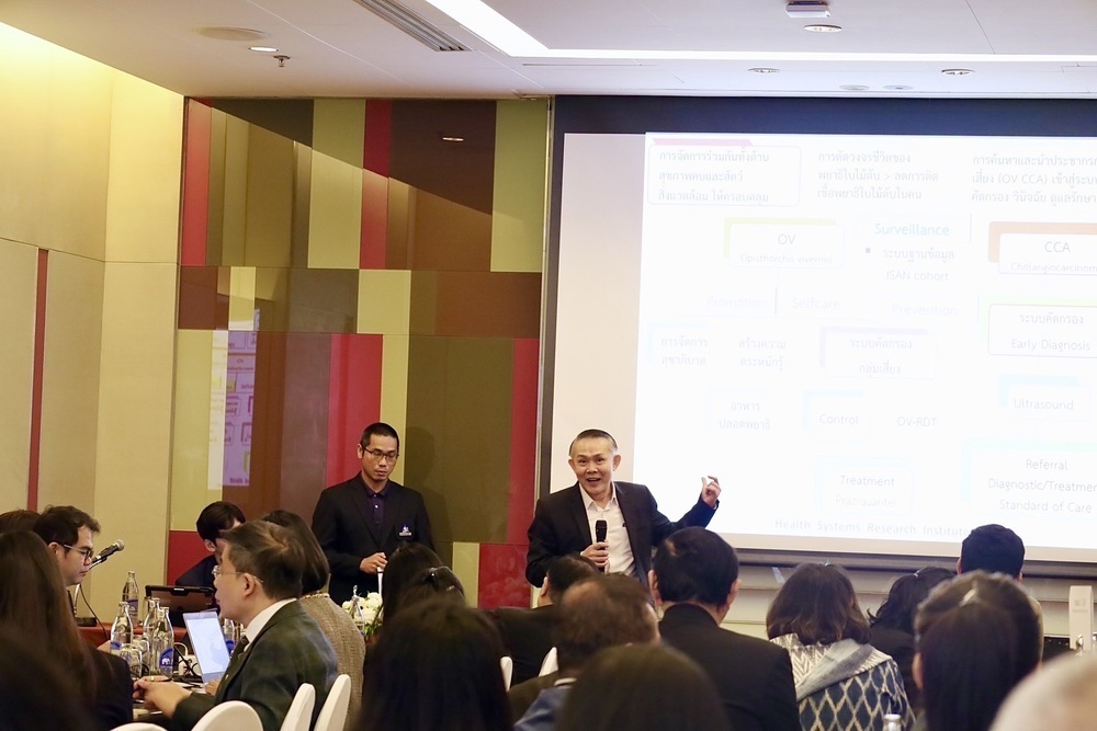 “ด้านกลยุทธ์และมาตรการสำคัญจะเน้นไปที่การวิจัยเพื่อเพิ่มประสิทธิผล และการนำงานวิจัยไปใช้ประโยชน์  โดยจะบูรณาการการทำงานร่วมกันในเขตสุขภาพที่ 7, 8, 9 และ 10 พร้อมการใช้เทคโนโลยีในการตรวจคัดกรองโรค และมีการพัฒนาฐานข้อมูลต่างๆ เช่น Isan Cohort ต่อเนื่อง, เพิ่มขีดความสามารถในการดูแลรักษาทุกระยะ, สร้างความรอบรู้ด้านสุขภาพให้กับคนรุ่นใหม่, มีการจัดการปลาร้าตั้งแต่ต้นทางให้เป็นปลาร้าไร้พยาธิ, มีการจัดการสิ่งปฏิกูลที่ถูกสุขลักษณะ และมีสุขาภิบาลที่ดี ฯลฯ ซึ่งเป็นวงจรของปัญหาและทางออกสำคัญของเรื่องนี้” ผอ.สวรส. กล่าว