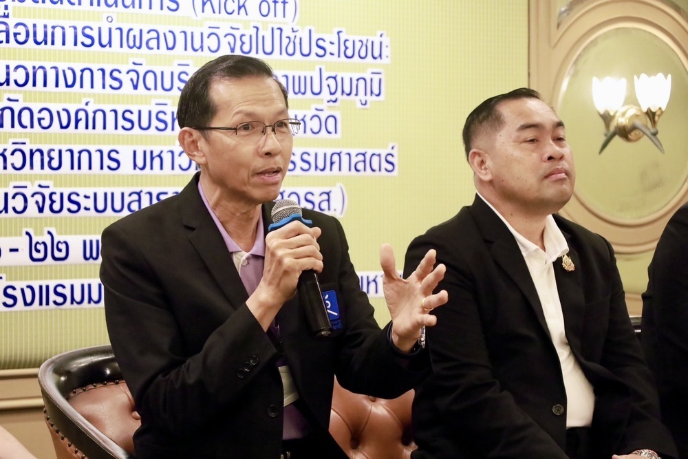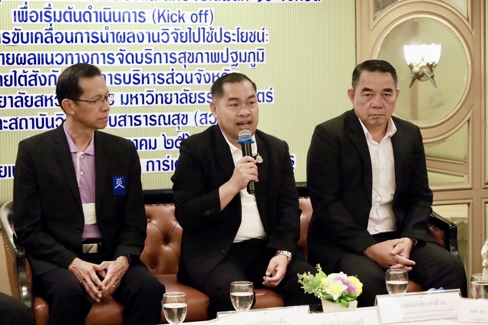 รศ.ดร.ธัชเฉลิม สุทธิพงษ์ประชา วิทยาลัยสหวิทยาการ มหาวิทยาลัยธรรมศาสตร์ หัวหน้าโครงการวิจัย กล่าวถึงแนวคิดและสาระสำคัญของงานวิจัยว่า การพัฒนารูปแบบการถ่ายโอน รพ.สต. ให้แก่ อบจ. ที่ทำให้ประชาชนเข้าถึงบริการสุขภาพปฐมภูมิได้ดีขึ้น งานวิจัยในระยะแรกมี 11 พื้นที่นำร่อง แบ่งเป็น กลุ่ม 1 ศึกษาการขับเคลื่อนทั้งจังหวัด (ระยอง ปราจีนบุรี) กลุ่ม 2 ศึกษาการขับเคลื่อนทั้งอำเภอ (ปัตตานี สกลนคร ลำปาง อุบลราชธานี) กลุ่ม 3 ศึกษาการขับเคลื่อนในระดับอำเภอ แต่ไม่ครอบคลุมทั้งอำเภอ (สุโขทัย กำแพงเพชร เพชรบูรณ์ น่าน) กลุ่ม 4 พื้นที่พิเศษ (เชียงใหม่) ซึ่งงานวิจัยได้ทดลองการยกระดับการจัดบริการสุขภาพปฐมภูมิของ อบจ. ด้วยหลักเวชศาสตร์ครอบครัว และออกแบบระบบบูรณาการยุทธศาสตร์ด้านสาธารณสุขของ อบจ. และหน่วยงานสังกัดกระทรวงสาธารณสุข ภายใต้กลไกคณะกรรมการสุขภาพระดับพื้นที่ (กสพ.) แผนพัฒนาสุขภาพระดับพื้นที่ และระบบการประเมินประสิทธิภาพของ อปท. โดยมีกรอบแนวคิดและทฤษฎีในการศึกษาวิจัยคือ ทฤษฎีการเปลี่ยนแปลง ทฤษฎีการบริหารจัดการภาครัฐแบบเครือข่าย และการประเมินผลเชิงพัฒนา รวมทั้งมีการใช้กลไกแทรกแซง (Intervention) คือ มีชุดทำงานขับเคลื่อนงานปฐมภูมิระดับจังหวัด มีช่องทางการ Coaching ทั้งในเรื่องระเบียบและความรู้ ในรูปแบบนักวิจัยพี่เลี้ยง มีการบูรณาการยุทธศาสตร์และตัวชี้วัด พร้อมใช้เครื่องมือ อาทิ การคิดค้นและดำเนินโครงการเพื่อแก้ปัญหาของพื้นที่ (โครงการเรือธง) ส่งเสริมแนวทางการทำงานแบบบูรณาการและนำโครงการเรือธงเข้าสู่กระบวนการตัดสินใจเชิงนโยบายของ กสพ. อบจ. และสำนักงานสาธารณสุขจังหวัด (สสจ.) การติดตามการวินิจฉัยโรคต่างๆ และการรับบริการสุขภาพ การสำรวจความคิดเห็น ฯลฯ และจาก 11 พื้นที่นำร่องที่เกิดเป็นรูปแบบการพัฒนาการให้บริการสุขภาพปฐมภูมิที่หลากหลาย ตามบริบทของแต่ละพื้นที่ ได้มีการนำงานวิจัยในระยะแรกไปขยายผลอีก 10 จังหวัด แบ่งเป็น กลุ่ม 1 ศึกษาการขับเคลื่อนทั้งจังหวัด (ขอนแก่น ชลบุรี มุกดาหาร) กลุ่ม 2 ศึกษาการขับเคลื่อนทั้งอำเภอ (สมุทรสาคร นราธิวาส พิจิตร ศรีสะเกษ) กลุ่ม 3 ศึกษาการขับเคลื่อนในระดับอำเภอ แต่ไม่ครอบคลุมทั้งอำเภอ (ยะลา สงขลา) กลุ่ม 4 ศึกษาการขับเคลื่อนการบูรณาการระหว่าง อบจ. และเทศบาล (ปทุมธานี) โดยมีทีมนักวิจัยพี่เลี้ยงพร้อมถ่ายทอดประสบการณ์และให้คำปรึกษา
