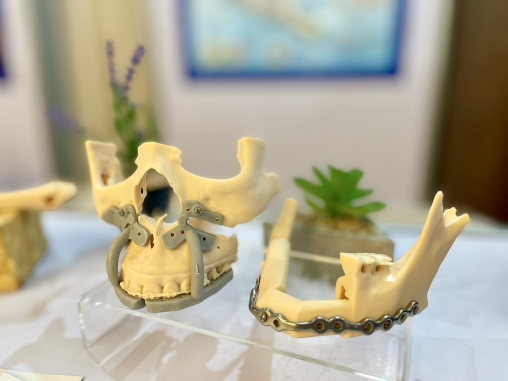 งานวิจัยจึงได้พัฒนากระบวนการออกแบบอุปกรณ์ที่ช่วยในการวางแผนการผ่าตัดกระดูกขากรรไกร โดยใช้เทคโนโลยีการพิมพ์สามมิติ (3D Printing) ที่เหมาะสมเฉพาะบุคคล เพื่อเพิ่มประสิทธิภาพการรักษาและลดข้อจำกัดของการผ่าตัด โดยเป็นอุปกรณ์นำร่องใบมีดผ่าตัด (Cutting Guide) และอุปกรณ์ช่วยยึดตำแหน่งกระดูก (Fixation Plate) ที่สามารถช่วยเพิ่มความแม่นยำในการผ่าตัดบูรณะขากรรไกร รวมถึงลดระยะเวลาผ่าตัด และระยะเวลาพักฟื้นได้ 50% ลดต้นทุนการรักษาได้ 25% ทั้งนี้ผลลัพธ์ของการผ่าตัดและการติดตามผลพบว่า การวางแผนผ่าตัดแบบสามมิติมีความแม่นยำสูง และอุปกรณ์ที่ได้รับการออกแบบสามารถปรัปเปลี่ยนไปได้ตามเฉพาะบุคคล โดยรูปทรงของอุปกรณ์มีลักษณะความโค้งเข้ากับผิวของกระดูกผู้ป่วยแต่ละคนได้เป็นอย่างดี และเมื่อพิจารณาร่วมกับภาพเอกซเรย์พบว่า ขากรรไกรของผู้ป่วยที่ได้รับการผ่าตัดบูรณะมีความสมมาตร ตลอดจนสามารถใส่ฟันปลอมและ/หรือทำรากฟันเทียมได้ตามที่วางแผนไว้ นับเป็นการสร้างแนวทางใหม่ในการรักษาที่ทำให้ผู้ป่วยมีคุณภาพชีวิตที่ดีหลังการผ่าตัด