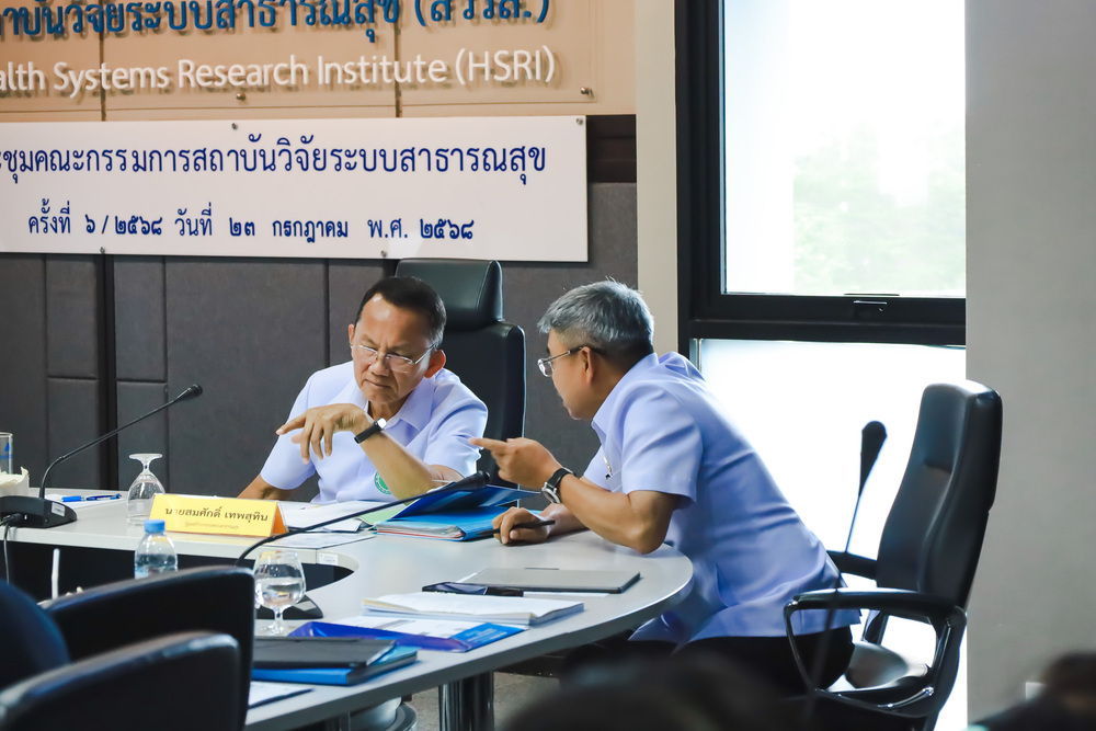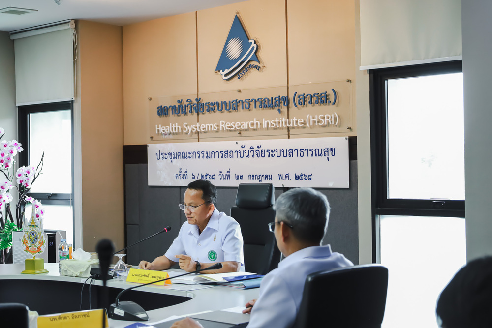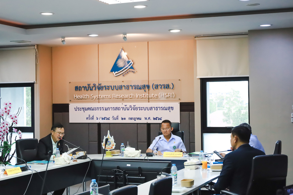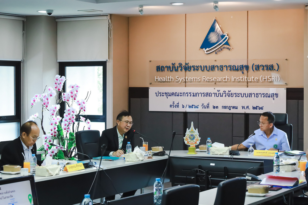 การประชุมคณะกรรมการสถาบันวิจัยระบบสาธารณสุข (บอร์ด สวรส.) ครั้งที่ 6/2568 มี นายสมศักดิ์ เทพสุทิน รัฐมนตรีว่าการกระทรวงสาธารณสุข เป็นประธานการประชุม และ นพ.ศุภกิจ ศิริลักษณ์ ผู้อำนวยการสถาบันวิจัยระบบสาธารณสุข กรรมการเเละเลขานุการ พร้อมด้วยกรรมการจากผู้เเทนกระทรวง เเละผู้ทรงคุณวุฒิด้านต่างๆ ร่วมประชุม เมื่อวันที่ 23 ก.ค. 2568 ณ ห้องประชุมสุปัญญา สถาบันวิจัยระบบสาธารณสุข ชั้น 4 อาคารสุขภาพแห่งชาติ