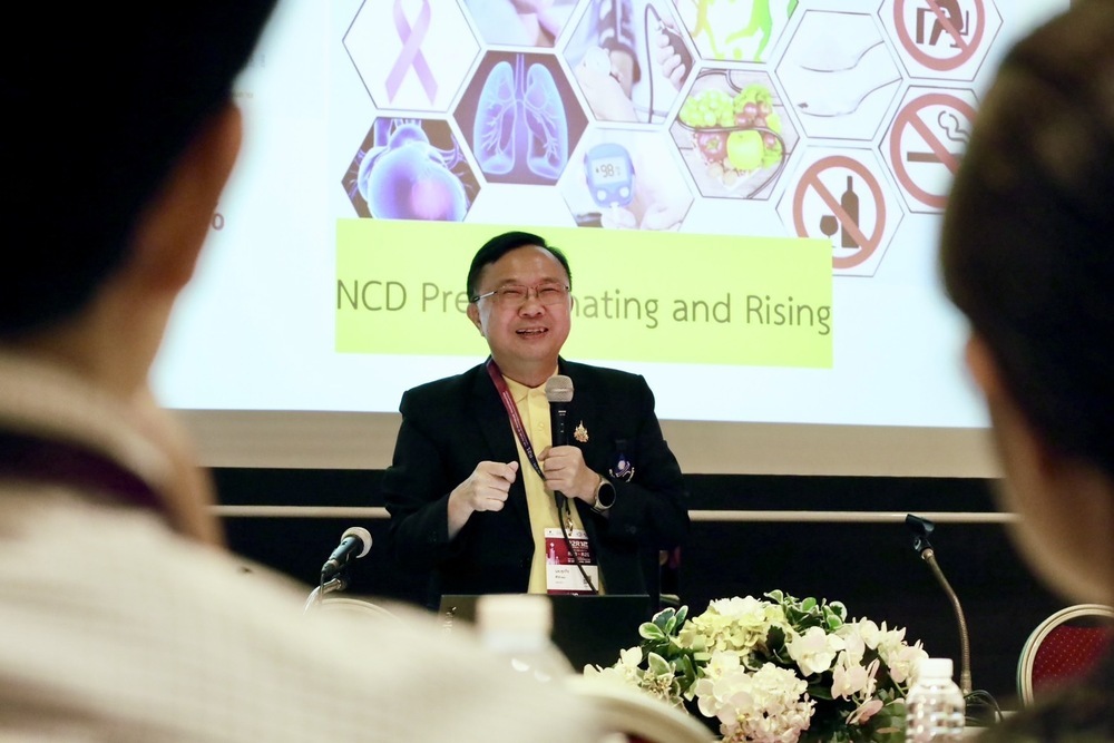 นอกจากนี้ ผอ.สวรส. ยังชี้ให้เห็นสถานการณ์สำคัญที่กำลังคุกคามประเทศไทย ไม่ว่าจะเป็น การเข้าสู่สังคมผู้สูงอายุเร็วกว่าที่คาด ทำให้สังคมต้องแบกรับภาระการดูแลผู้สูงอายุที่มีจำนวนมากขึ้น อัตราการเกิดน้อยลง โรคไม่ติดต่อเรื้อรัง (NCDs) จากข้อมูลการสำรวจสุขภาพประชาชนไทยพบว่า ความชุกของผู้ป่วยเบาหวานและความดันโลหิตสูงในคนไทยอายุ 15 ปีขึ้นไป มีความชุกของโรคเบาหวานและความดันโลหิตสูงเพิ่มขึ้น และมีแนวโน้มสูงขึ้นเรื่อยๆ ส่งผลให้มีความเสี่ยงที่จะพัฒนาไปสู่การเป็นโรคไต โรคหลอดเลือดสมอง โรคหัวใจตามมา ซึ่งถ้าจะทำงานวิจัย R2R ควรเลือกทำในประเด็นที่มีความสำคัญลำดับต้นๆ เหล่านี้ก่อน เนื่องจากมีความต้องการการจัดการที่สามารถแก้ปัญหาได้อย่างเป็นรูปธรรม รวมทั้งต้องเป็นการทำวิจัยเพื่อให้เกิดความเป็นธรรมในการเข้าถึงบริการสุขภาพของคนทุกกลุ่มในสังคม โดยต้องเชื่อมโยงทุกมิติไปด้วยกัน ทั้งระบบบริการสุขภาพ กำลังคนด้านสุขภาพ การเงินการคลังด้านสุขภาพ ระบบสารสนเทศด้านสุขภาพ ยาและเทคโนโลยี การอภิบาลระบบสุขภาพ และระบบสุขภาพชุมชน ควบคู่กับการประเมินเชิงพัฒนา (Developmental Evaluation: DE) ซึ่งเป็นการประเมินที่สนับสนุนให้เกิดการเรียนรู้ระหว่างทาง และการให้ข้อมูลที่ช่วยลดการเกิดปัญหาต่างๆ ในอนาคต ทั้งนี้งานวิจัย R2R ใน 100 เรื่อง อาจจะมีงานที่เกิดเป็นนวัตกรรมดีๆ ประมาณ 10 แล้วเหลือแค่เพียง 1 เรื่องที่สามารถนำมาพัฒนาต่อ โดยอาจใช้ห้องปฏิบัติการนวัตกรรมทางสังคม (The Social Innovation Lab) มาช่วยในการขยายผลและทำให้เกิดการใช้งานได้จริง