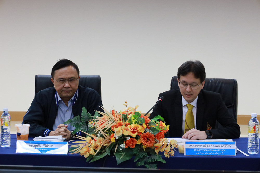 ต่อมา ผศ.พญ.พรทิพย์ นิ่มขุนทด หัวหน้าแผนกวิจัยคลินิก ได้นำเสนอแนวทางและความพร้อมของโรงพยาบาลในการจัดตั้งและให้บริการด้านการวิจัยคลินิก โดยชูศักยภาพของ SUTH Clinical Research Center (CRC) ซึ่งเป็นศูนย์ความเป็นเลิศทางการแพทย์ (Flagship COE-Medical Excellence Center) ที่มีภารกิจหลักในการบูรณาการศาสตร์ด้านสุขภาพ วิศวกรรม และเทคโนโลยีเข้าด้วยกัน เพื่อขับเคลื่อนงานวิจัยให้เกิดผลกระทบและนำไปสู่การใช้งานได้จริง ตลอดจนระบบนิเวศการวิจัยและนวัตกรรมของ SUTH ที่มุ่งเน้นสองด้านหลัก ได้แก่ ระบบการดูแลสุขภาพ (Healthcare System) และการนำงานวิจัยทางการแพทย์ไปใช้ในเชิงพาณิชย์