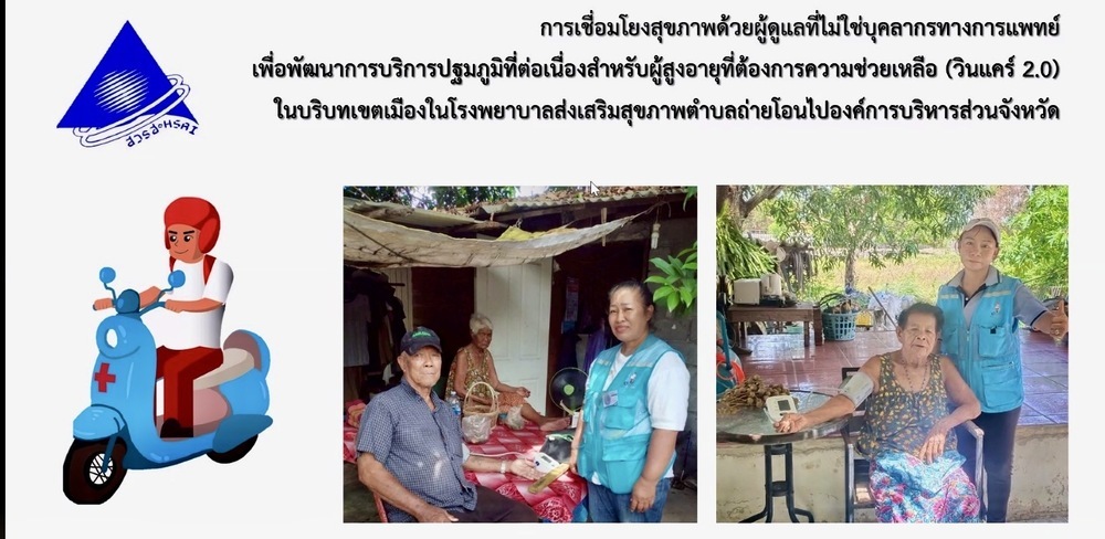ผศ.ดร.จรวยพร ศรีศศลักษณ์ รองผู้อำนวยการสถาบันวิจัยระบบสาธารณสุข กว่าวว่า โครงการ WinCare 2.0 เป็นการต่อยอดจากโครงการ WinCare 1.0 ที่เริ่มดำเนินการใน จ.เชียงใหม่ ซึ่งเน้นพัฒนารูปแบบการดูแลผู้สูงอายุที่ต้องได้รับการดูแลต่อเนื่องในเขตเมือง โดยผู้ดูแลที่เรียกว่า WinCare (วินแคร์) ซึ่งเป็นผู้ดูแลที่ไม่ใช่บุคลากรทางการแพทย์ และเป็นกลุ่มที่มีพาหนะของตนเองเพื่ออำนวยความสะดวกในการให้บริการ และมีการเปรียบเทียบผลลัพธ์ทางสุขภาพและคุณภาพชีวิตของผู้สูงอายุทั้งก่อนและหลังการดำเนินโครงการ ระหว่างกลุ่มทดลอง (WinCare 2.0) และกลุ่มควบคุม ตลอดจนพัฒนาข้อเสนอแนะเพื่อการขยายผลโครงการไปยังพื้นที่อื่น โดยใช้แนวคิดเวชศาสตร์ครอบครัว ซึ่งโมเดลนี้สามารถขยายผลนำไปปรับใช้ในพื้นที่อื่นๆ ทั่วประเทศ ภายใต้การบริหารจัดการขององค์กรปกครองส่วนท้องถิ่น (อปท.) ซึ่งจะทำให้เกิดการจ้างงานและการจัดสรรทรัพยากรที่ช่วยให้มีการดูแลผู้สูงอายุที่เป็นโรคเรื้อรัง เช่น โรคเบาหวานและความดันโลหิตสูงได้ดีมากยิ่งขึ้น และเป็นอีกแนวทางหนึ่งที่สามารถเสริมประสิทธิภาพการควบคุมโรคไม่ติดต่อเรื้อรังได้อย่างเป็นรูปธรรม โดย WinCare จะต้องเป็นคนในชุมชนที่รู้จักกัน และเป็นอาสาที่เข้าไปเยี่ยมบ้านและดูแลทางด้านสังคม เช่น การพาไปโรงพยาบาลตามนัด การซื้ออาหารที่เหมาะสมกับผู้ป่วย การวัดความดันโลหิต การเตือนเรื่องการกินยา การให้คำแนะนำด้านสุขภาพเบื้องต้น ฯลฯ ซึ่งเป็นบทบาทที่เสริมหนุนกับ อสม. ที่ปัจจุบันอาจมีภาระงานหนักและให้บริการได้ไม่ทั่วถึง ทั้งนี้การนำไปใช้ประโยชน์ในอนาคต และการดำเนินการต่อเนื่อง อาจมีการขอทุนสนับสนุนการดำเนินงานไปยังกองทุนสุขภาพตำบล กองทุนหรือมูลนิธิต่างๆ ในพื้นที่ และขยับเป็นนโยบายในระดับพื้นที่ต่อไป