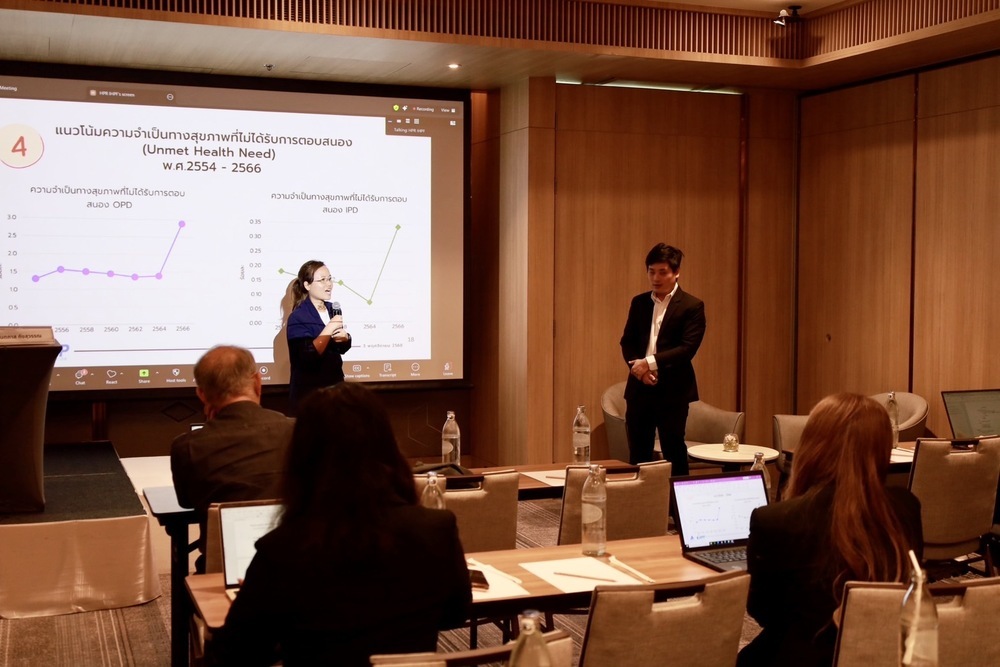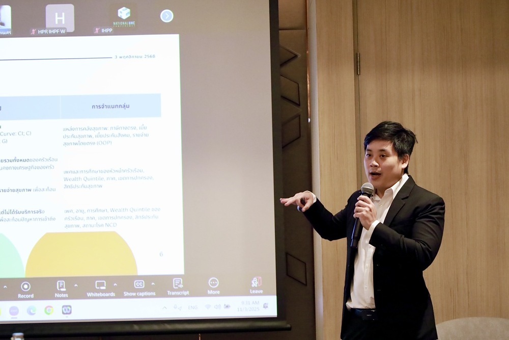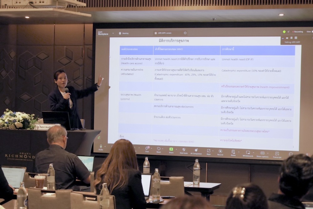 ทั้งนี้ผลการศึกษาเบื้องต้นพบว่า ความเป็นธรรมทางการเงินของระบบสุขภาพไทยเริ่มถดถอย คนจนจ่ายมากกว่าคนรวย ภาระรายจ่ายสุขภาพที่ทำให้ครัวเรือนล้มละลาย และความยากจนจากรายจ่ายสุขภาพ พบว่า ภาคใต้ ภาคเหนือ และภาคอีสานเป็นภูมิภาคที่มีความเสี่ยงด้านรายจ่ายสุขภาพสูงที่สุด ครัวเรือนในพื้นที่นอกเขตเทศบาลมีความเสี่ยงทางการเงินจากรายจ่ายสุขภาพสูงกว่า กลุ่มรายได้ต่ำมีความเปราะบางต่อรายจ่ายสุขภาพที่เกินขีดจำกัด ขณะที่กลุ่มรายได้สูงกลับมีอัตราความยากจนจากรายจ่ายสุขภาพสูงกว่า ระบบหลักประกันสุขภาพของรัฐ (บัตรทองและประกันสังคม) สามารถลดภาระรายจ่ายสุขภาพที่เกินขีดจำกัดได้อย่างชัดเจน แต่ช่องว่างด้านความยากจนจากรายจ่ายสุขภาพ ยังคงมีในกลุ่มสิทธิบัตรทองและผู้ไม่มีสิทธิ กลุ่มที่มีการศึกษาสูงมีภาระรายจ่ายสุขภาพสูง แต่ไม่ยากจน ขณะที่กลุ่มการศึกษาต่ำ ยังคงมีภาระและความยากจนจากรายจ่ายสุขภาพสูง ซึ่งข้อสังเกตสำคัญคือ ภาระรายจ่ายสุขภาพโดยรวมอยู่ในระดับต่ำ แต่ยังมีความเหลื่อมล้ำระหว่างภูมิภาค พื้นที่ และเศรษฐฐานะชัดเจน กลุ่มเปราะบาง โดยเฉพาะผู้มีรายได้น้อย ผู้ไม่มีสิทธิและอยู่ในพื้นที่ชนบท ยังมีความเสี่ยงทางการเงินสูง ดังนั้นอาจจำเป็นต้องเสริมกลไกการคุ้มครองทางการเงินและการเข้าถึงบริการให้ครอบคลุมมากขึ้น ด้านความจำเป็นทางสุขภาพที่ไม่ได้รับการตอบสนอง ในเขตเทศบาลมีสัดส่วนผู้ที่ไม่ได้รับบริการเมื่อมีความต้องการสูงกว่านอกเขต สะท้อนปัญหาความหนาแน่นของบริการและเวลาการรอคอยในพื้นที่เขตเมือง ส่วนในกลุ่มบัตรทองและประกันสังคม เหตุผลหลักของการไม่ได้รับบริการคือ ไม่มีเวลา และคิวยาว/รอนาน ขณะที่กลุ่มรายได้น้อยและไม่มีสิทธิ พบปัญหาการเดินทางและค่าใช้จ่าย สะท้อนความเหลื่อมล้ำทั้งด้านบริการและโอกาสการเข้าถึง ด้านข้อเสนอเชิงนโยบาย ควรติดตามความเหลื่อมล้ำรายกลุ่ม เช่น กลุ่มความเปราะบาง ควรเร่งลดค่าใช้จ่ายสุขภาพที่ไม่จำเป็น และใช้กลไกช่วยเหลือเฉพาะกลุ่ม เช่น สนับสนุนค่าเดินทางหรือค่ารักษาโรคร้ายแรงสำหรับกลุ่มเปราะบาง ควรนำเทคโนโลยี Telemedicine และ AI มาช่วยดูแลประชาชนเขตเมือง เพื่อลดเวลาเดินทาง ลดภาระของระบบสุขภาพและบุคลากรทางการแพทย์