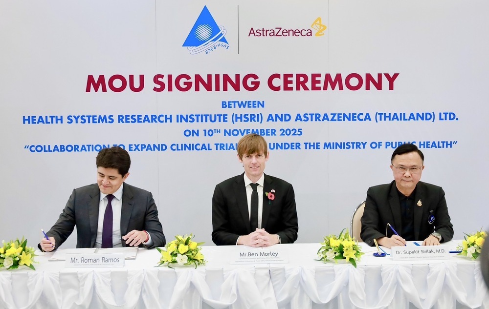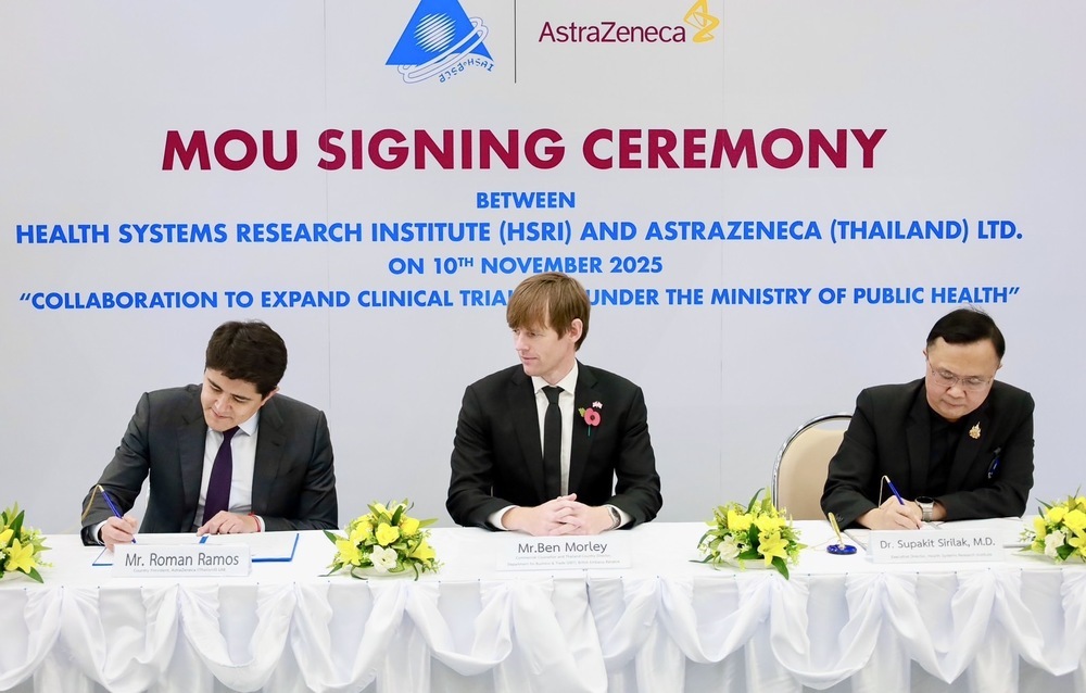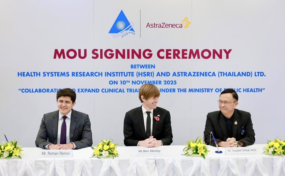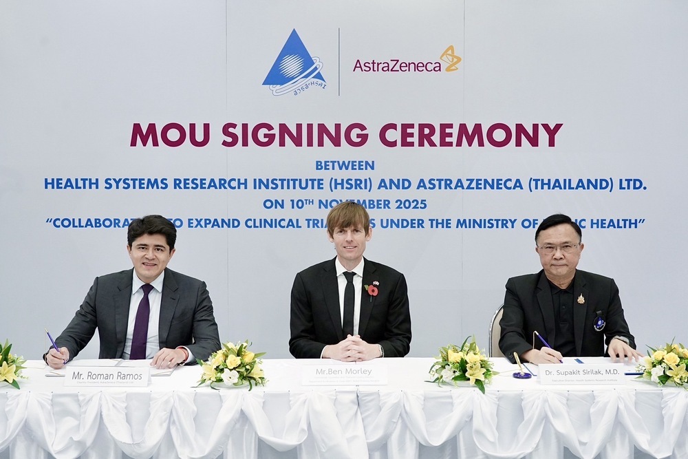 โดยเมื่อวันที่ 10 พฤศจิกายน 2568 - สถาบันวิจัยระบบสาธารณสุข (สวรส.) และบริษัท แอสตร้าเซนเนก้า (ประเทศไทย) จำกัด ได้ร่วมลงนามบันทึกข้อตกลงความร่วมมือระหว่างภาครัฐและเอกชน เพื่อขยายศูนย์วิจัยทางคลินิกภายใต้สังกัดกระทรวงสาธารณสุข โดยมี นพ.ศุภกิจ ศิริลักษณ์ ผู้อำนวยการสถาบันวิจัยระบบสาธารณสุข ลงนามร่วมกับ นายโรมัน รามอส ประธานบริษัทประจำประเทศไทย บริษัท แอสตร้าเซนเนก้า (ประเทศไทย) จำกัด และ นายเบน มอร์ลี่ย์ ที่ปรึกษาและผู้อำนวยการแผนกธุรกิจและการค้า สถานเอกอัครราชทูตอังกฤษประจำประเทศไทย ร่วมเป็นสักขีพยาน ณ ห้องประชุมสานใจ 1/1 ชั้น 6 อาคารสุขภาพแห่งชาติ