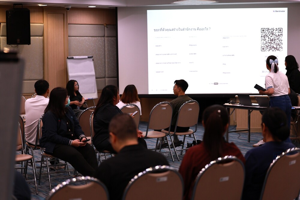 - สำรวจ Insight คนทำงาน: ทุกคนได้ร่วมแชร์ข้อมูลผ่าน Mentimeter ถึงขยะที่พบบ่อยและสิ่งที่ตั้งใจจะลดคนละ 3 ชิ้น เพื่อจุดประกายการเปลี่ยนแปลงจากตัวเราเอง