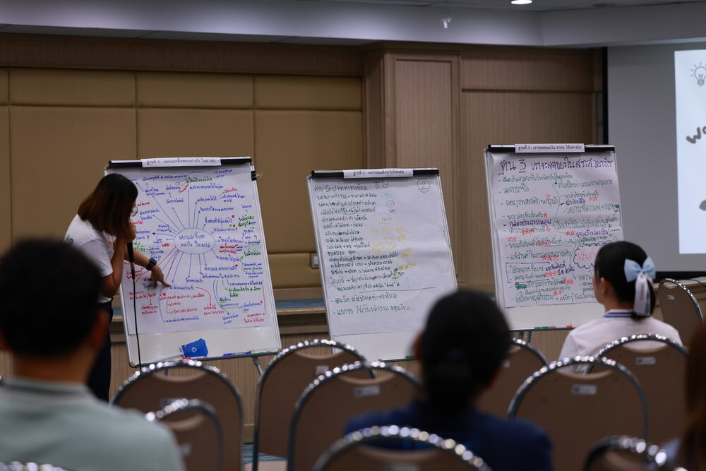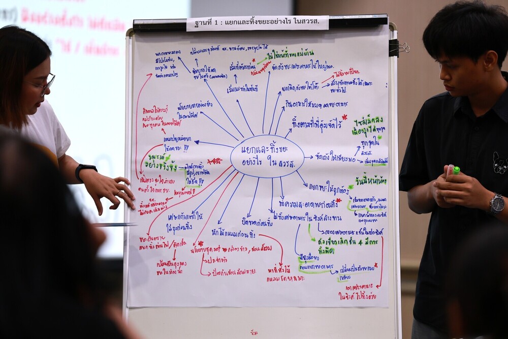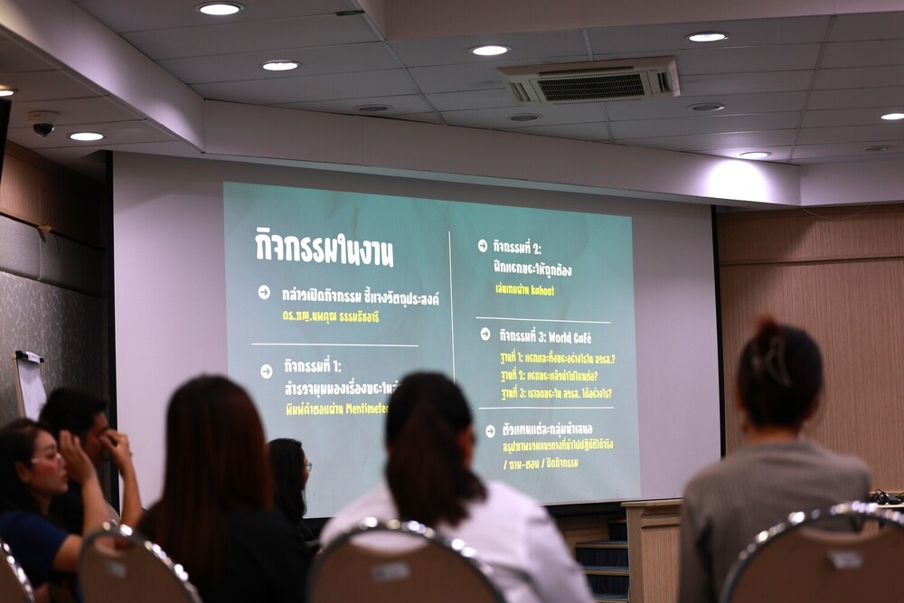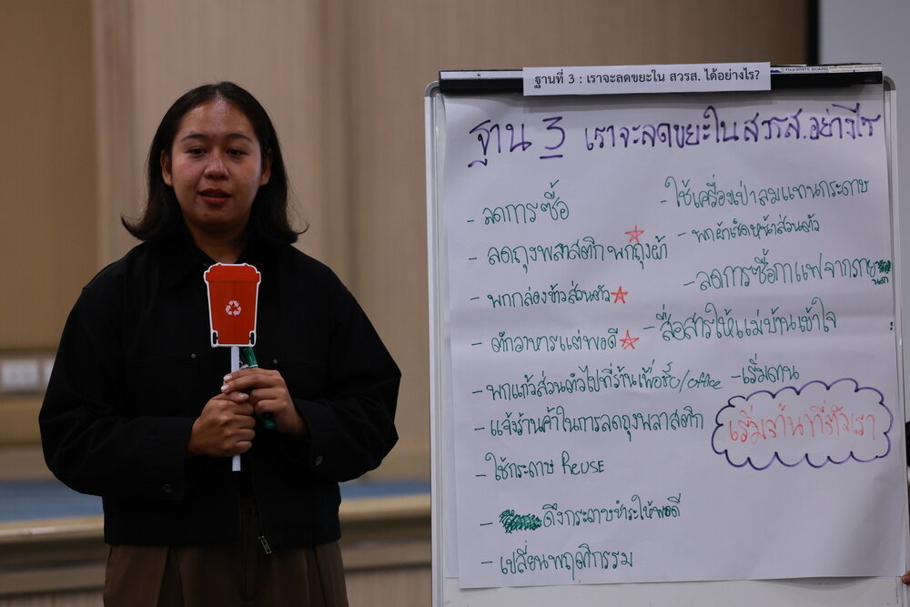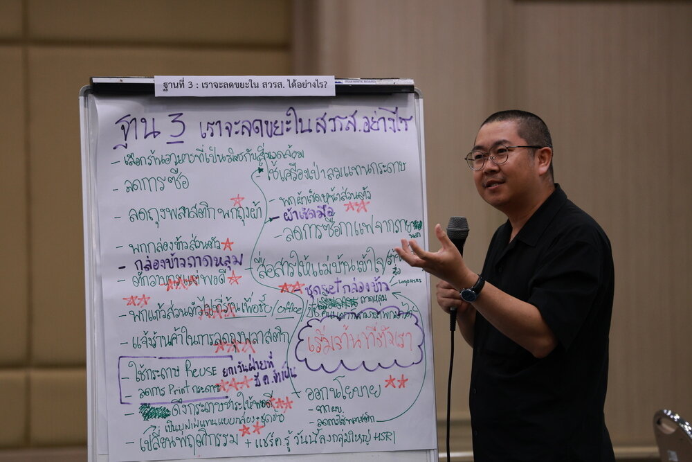 - ระดมสมองผ่าน World Café: แลกเปลี่ยนไอเดียใน 3 ฐานการเรียนรู้ ทั้งการจัดการขยะภายใน สวรส., การนำขยะไปแปรรูปเป็นสินค้าชุมชน และแนวทางการลดขยะในพื้นที่ทำงาน