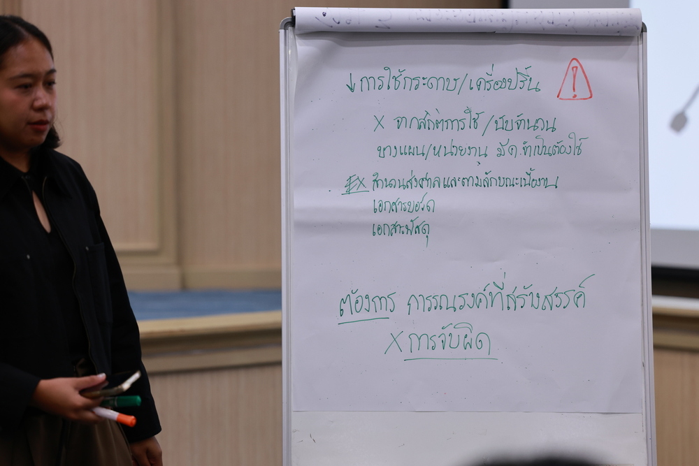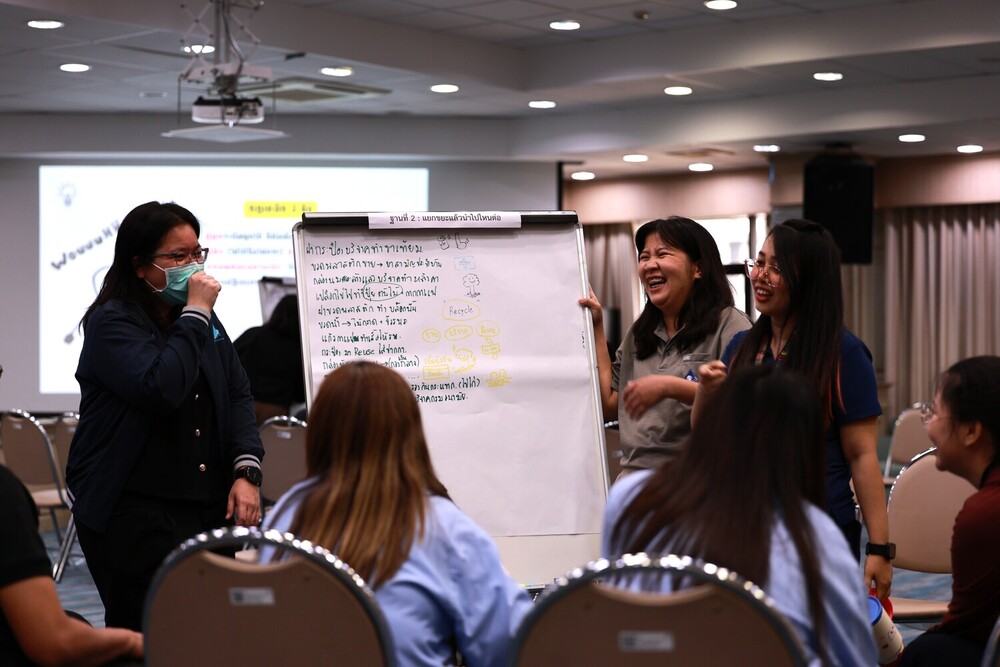 - สู่แนวทางปฏิบัติจริง: ตัวแทนแต่ละกลุ่มได้นำเสนอไอเดียและร่วมกันสรุปแนวทางที่สามารถนำไปเริ่มใช้ได้ทันที เพื่อสร้างออฟฟิศสีเขียวไปด้วยกัน