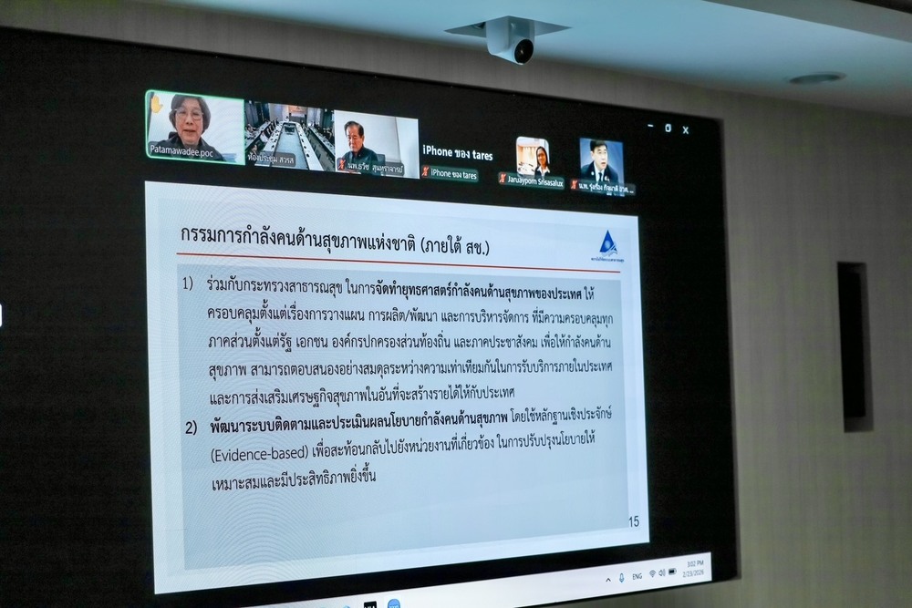 การประชุมคณะกรรมการสถาบันวิจัยระบบสาธารณสุข ครั้งที่ 2/2569 มี นพ.สมฤกษ์ จึงสมาน ปลัดกระทรวงสาธารณสุข เป็นประธานฯ และ นพ.ศุภกิจ ศิริลักษณ์ ผู้อำนวยการสถาบันวิจัยระบบสาธารณสุข กรรมการเเละเลขานุการ พร้อมด้วยกรรมการจากผู้เเทนกระทรวง เเละผู้ทรงคุณวุฒิด้านต่างๆ ร่วมประชุม เมื่อวันที่ 23 ก.พ. 2569 ณ ห้องประชุมสุปัญญา สถาบันวิจัยระบบสาธารณสุข ชั้น 4 อาคารสุขภาพแห่งชาติ