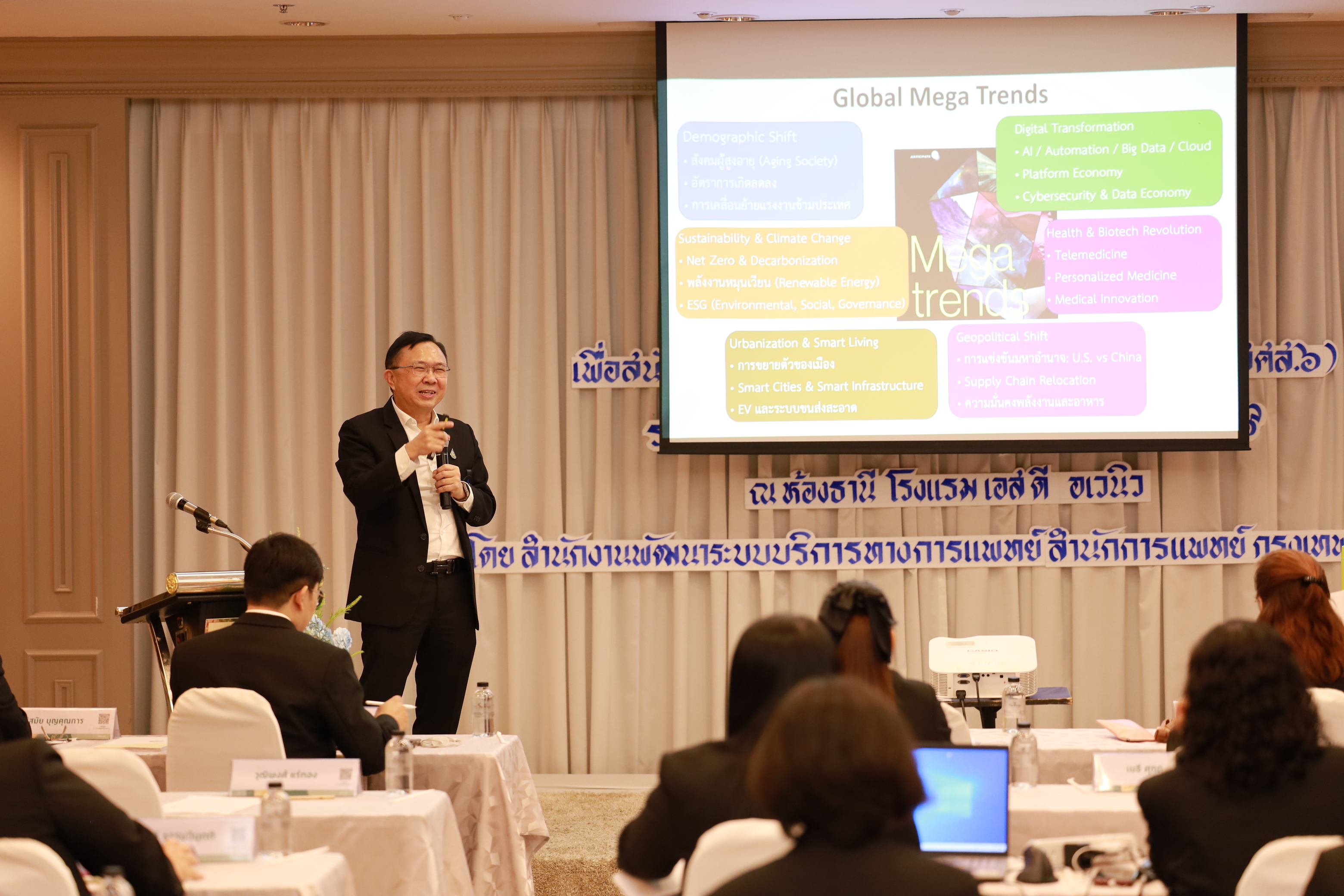 📌 ทิศทางของระบบสาธารณสุขไทยในอนาคต ไม่ใช่เพียงแค่การรักษาโรค แต่คือการสร้างระบบที่ "ยั่งยืน" (Sustainability) ผ่านนวัตกรรมและการบริหารจัดการที่มีประสิทธิภาพ เพื่อให้คนไทยมี "อายุคาดเฉลี่ยที่มีสุขภาพดี" (HALE) ที่ยาวนานขึ้น และสามารถพึ่งพาตนเองได้อย่างสง่างามในยุคดิจิทัล ณ ห้องธานี ชั้น 1 โรงแรม เอส ดี อเวนิว