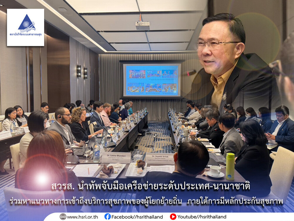 9 ตุลาคม 2568 : สถาบันวิจัยระบบสาธารณสุข (สวรส.) ร่วมกับ องค์การระหว่างประเทศเพื่อการโยกย้ายถิ่นฐาน (International Organization for Migration – IOM) พร้อมด้วยกระทรวงสาธารณสุข กระทรวงแรงงาน และเครือข่ายภาคีด้านสุขภาพ จัดการ “ประชุมระดับสูงคณะทำงานว่าด้วยสุขภาพผู้โยกย้ายถิ่นฐาน : High-level Meeting of Migrant Health Working Group (MHWG) โดยมี นพ.ศุภกิจ ศิริลักษณ์ ผู้อำนวยการสถาบันวิจัยระบบสาธารณสุข เป็นประธาน และ Dr. Leena Bhandari (Chief Migration Health Officer-IOM Thailand) ประธานร่วมในการประชุม ซึ่งได้ให้ความสำคัญและกล่าวถึงที่มาและวัตถุประสงค์ของการประชุม ตลอดจนป็นแกนหลักสำคัญในการพัฒนาความร่วมมือในการดำเนินงาน ในการประชุมครั้งนี้