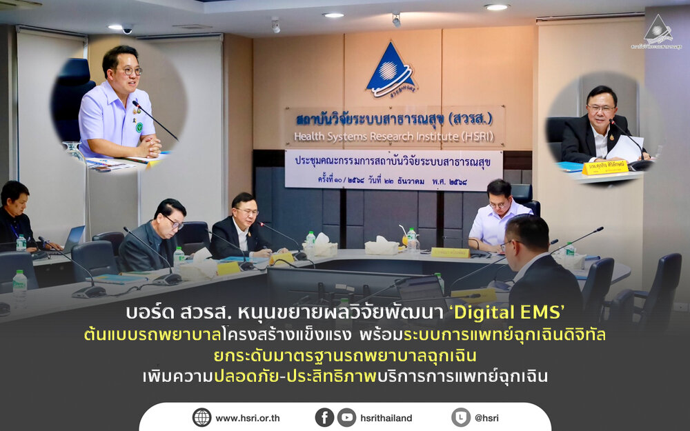 บอร์ด สวรส. หนุนขยายผลวิจัยพัฒนา ‘Digital EMS’ ต้นแบบรถพยาบาลโครงสร้างแข็งแรง พร้อมระบบการแพทย์ฉุกเฉินดิจิทัล ยกระดับมาตรฐานรถพยาบาลฉุกเฉิน เพิ่มความปลอดภัย-ประสิทธิภาพบริการการแพทย์ฉุกเฉิน