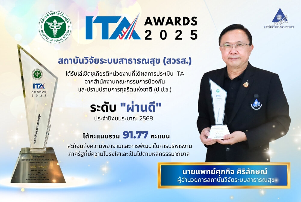 การประชุมคณะกรรมการสถาบันวิจัยระบบสาธารณสุข ครั้งที่ 10/2568 มี นายพัฒนา พร้อมพัฒน์ รัฐมนตรีว่าการกระทรวงสาธารณสุข เป็นประธานฯ และ นพ.ศุภกิจ ศิริลักษณ์ ผู้อำนวยการสถาบันวิจัยระบบสาธารณสุข กรรมการเเละเลขานุการ พร้อมด้วยกรรมการจากผู้เเทนกระทรวง เเละผู้ทรงคุณวุฒิด้านต่างๆ ร่วมประชุม เมื่อวันที่ 22 ธ.ค. 2568 ณ ห้องประชุมสุปัญญา สถาบันวิจัยระบบสาธารณสุข ชั้น 4 อาคารสุขภาพแห่งชาติ