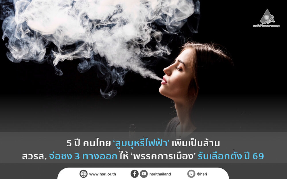 5 ปี คนไทย ‘สูบบุหรี่ไฟฟ้า’ เพิ่มเป็นล้าน สวรส. จ่อชง 3 ทางออก ให้ ‘พรรคการเมือง’ รับเลือกตั้ง ปี 69