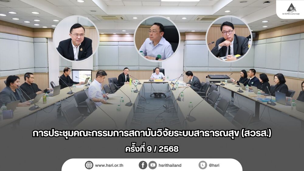 24 พฤศจิกายน 68 : สถาบันวิจัยระบบสาธารณสุข (สวรส.) จัดการประชุมคณะกรรมการสถาบันวิจัยระบบสาธารณสุข ครั้งที่ 9/2568 โดย นพ.ศุภกิจ ศิริลักษณ์ ผู้อำนวยการ สวรส. นำเสนอแผนบริหารงานและตัวชี้วัดการประเมินผลการปฏิบัติงานของผู้อำนวยการสถาบันวิจัยระบบสาธารณสุข ปึงบประมาณ พ.ศ. 2569 แต่งตั้งคณะอนุกรรมการประเมินผลการปฏิบัติงานของผู้อำนวยการสถาบันวิจัยระบบบสาธารณสุข และกรอบหลักเกณฑ์การประเมินผลการปฏิบัติงานของสถาบันวิจัยระบบสาธารณสุข ปีงบประมาณ พ.ศ. 2569นำเสนอโดย ผู้แทนบริษัท ทริส คอร์ปอเรชั่น จำกัด เรื่องปฏิทินการประชุมของคณะกรรมการสถาบันวิจัยระบบสาธารณสุข ปีงบประมาณ พ.ศ. 2569 การรายงานผลการดำเนินงานคณะอนุกรรมการตรวจสอบ ภายใต้คณะกรรมการสถาบันวิจัยระบบสาธารณสุข ประจำปีงบประมาณ พ.ศ. 2569 นำเสนอโดย นายพัลลภ ศักดิ์โสกณกุล ประธานอนุกรรมการตรวจสอบ ต่อมาเป็นโครงการบูรณาการมาตรฐานการบริบาลผู้ป่วยเบาหวานชนิดที่ 1 และผู้ป่วยเบาหวานที่วินิจฉัยก่อนอายุ 30 ปี นำเสนอโดย นพ.เพชร รอดอารีย์ พร้อมทีมสมาคมโรคเบาหวานแห่งประเทศไทย เพื่อผลลัพธ์ คุณภาพชีวิตที่ดีขึ้นต่อไป ณ ห้องประชุมสานใจ 2 ชั้น 6 อาคารสุขภาพแห่งชาติ จังหวัดนนทบุรี