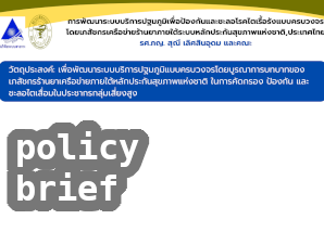 เอกสารเนื้อหาฉบับย่อและข้อเสนอแนะเชิงนโยบายที่สำคัญ ประเด็นสำหรับฝ่ายบริหาร หรือผู้มีอำนาจตัดสินใจเชิงนโยบาย เพื่อใช้ตัดสินเกี่ยวกับการดำเนินการตามนโยบายของรัฐหรือหน่วยงานรัฐบาล